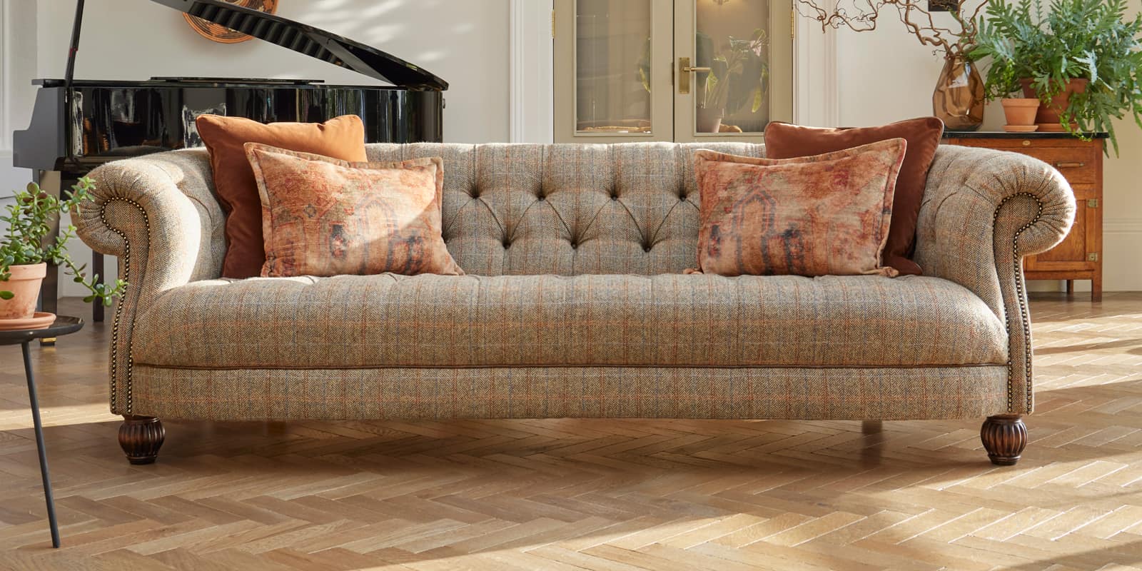 Tradition, Stil und Komfort sind die Worte, die Tetrad und den klassischen Harris Tweed Stoff miteinander verbinden. Durch die Kombination von Tetrads meisterhafter Handwerkskunst mit dem strapazierfähigen und prestigeträchtigen Harris Tweed Stoff ist eine Kollektion entstanden, die Qualität und Stil ausstrahlt und ein Gefühl von zeitloser Eleganz und Tradition verkörpert.