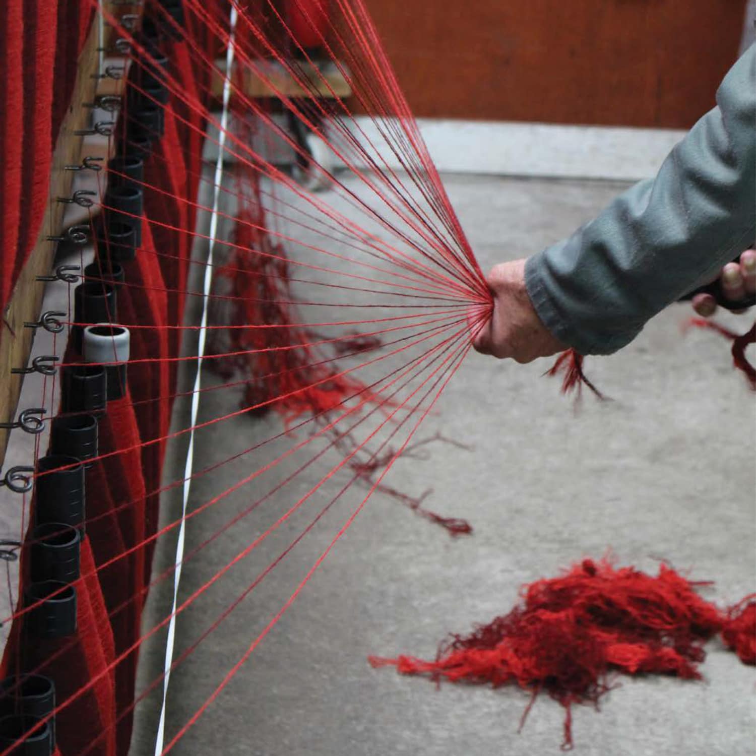 Bemerkenswert ist, dass die Wolle vor dem Spinnen gefärbt wird, wodurch eine Vielzahl von Farben in das Garn eingemischt werden kann. So entsteht ein Stoff von großer Tiefe und Komplexität.
