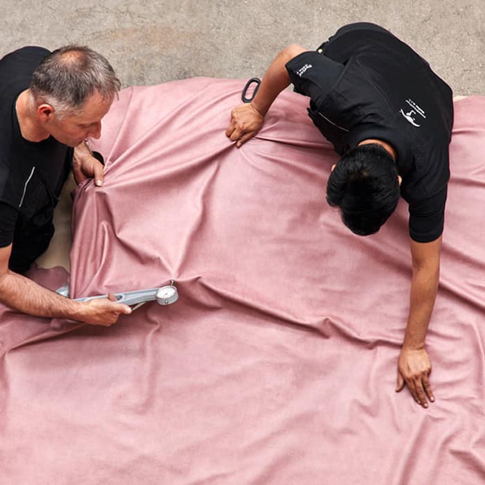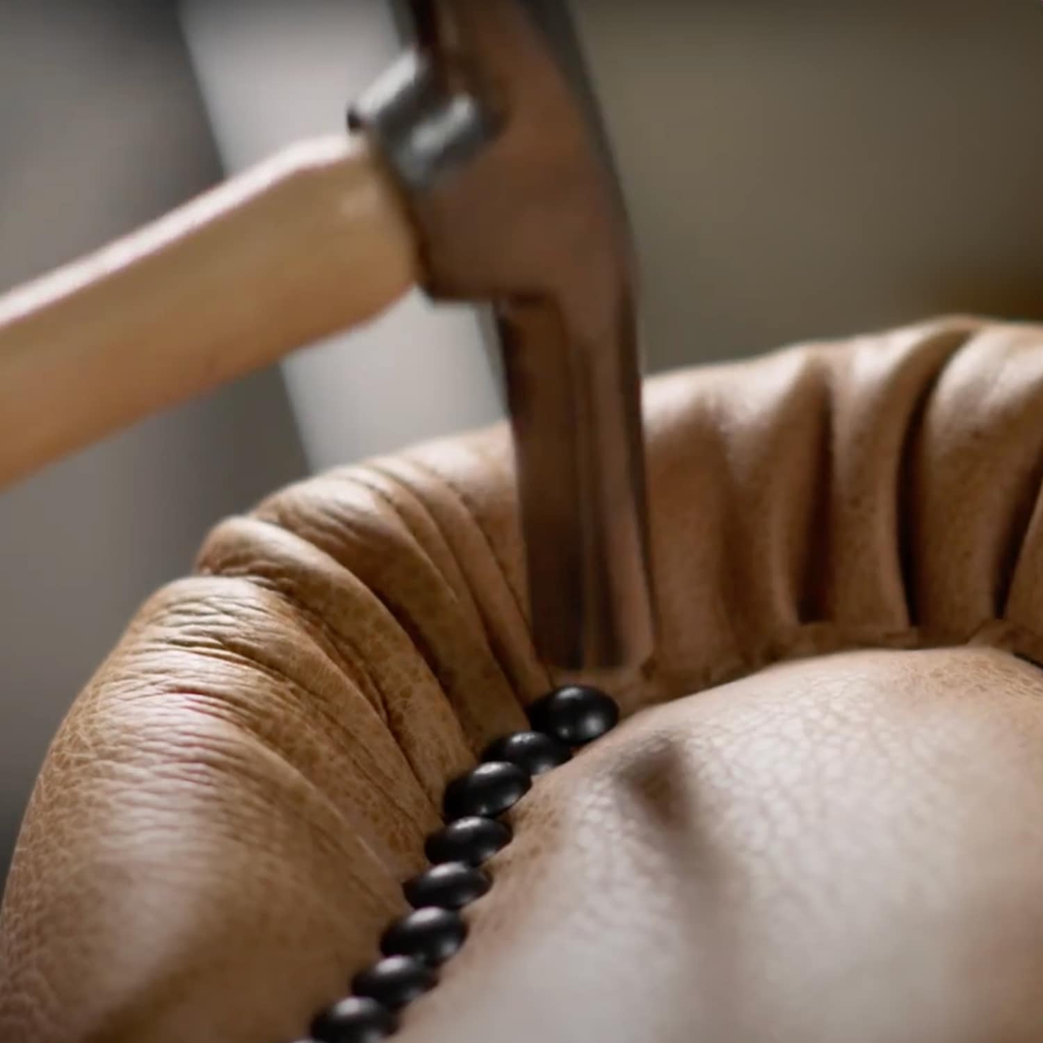 Dieses Streben nach Perfektion macht sich auch bei der Kapitonierung, der traditionelle Handwerkstechnik durch die das charakteristische Rautenmuster entsteht, bemerkbar. Hier wir jeder tief sitzende Knopf während des Polsterungsprozesses von Hand am Rahmen befestigt.